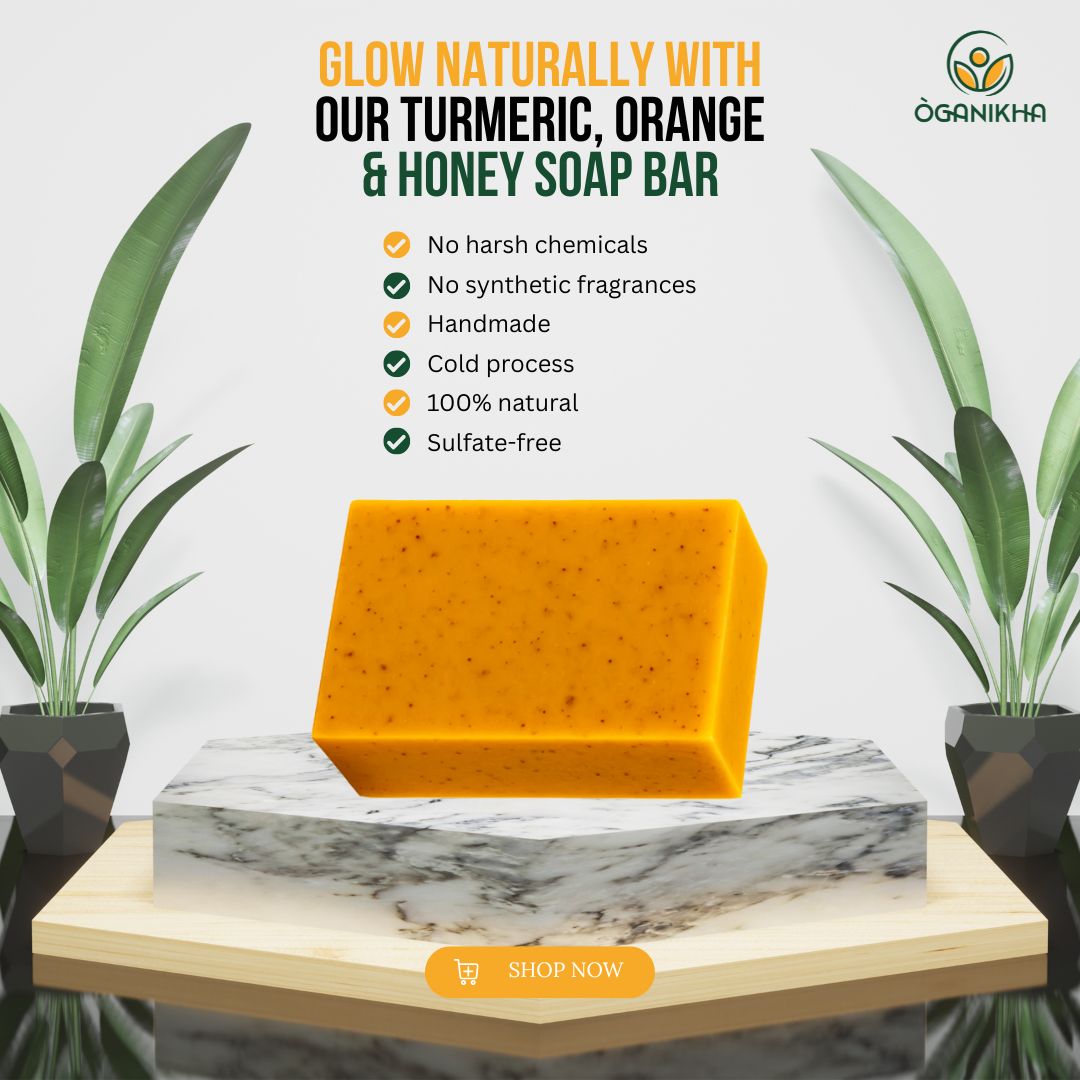 Natural & Organic Turmeric, Orange & Honey Soap Bar – Cold Process Skincare for Glowing Skin